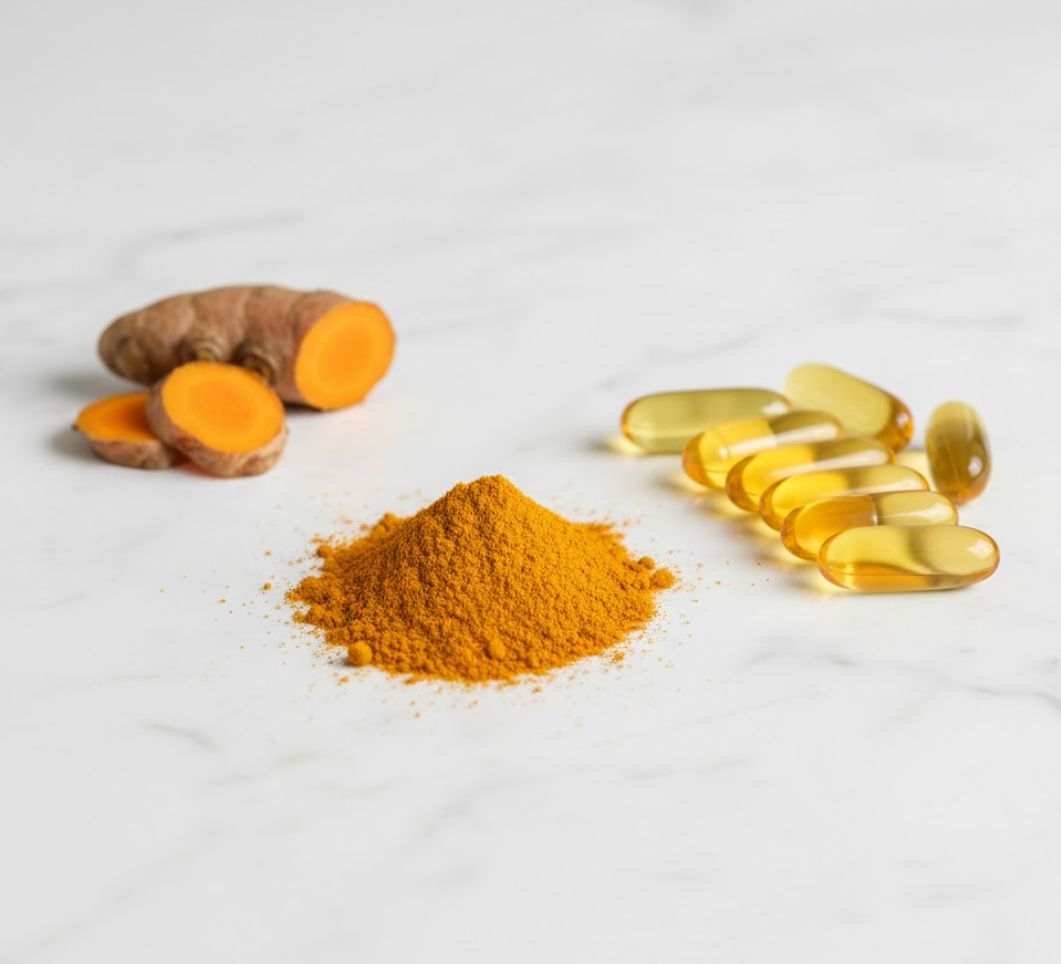 강황의 활성 성분인 **커큐민(Curcumin)**은 근육 회복 지원 효과로 오랫동안 연구되어 왔습니다. 여러 연구에 따르면 커큐민 섭취는 운동 후 발생하는 지연성 근육통(DOMS)과 인지된 근육 통증을 줄여줍니다.
