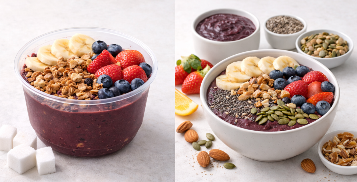 - 시중에서 판매되는 아사이 볼이나 주스에는 설탕이나 칼로리가 높은 재료가 추가된 경우가 많으니 라벨을 꼼꼼히 확인하세요.